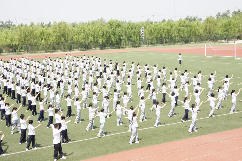 做课间操时学生以班级为单位跑步入场、课间操结束后再以班级为单位跑步退场。
