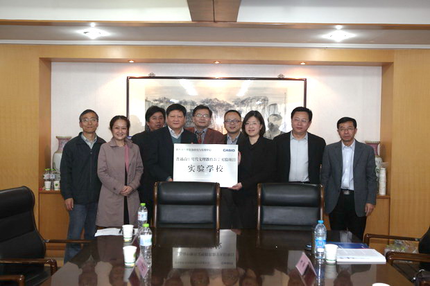 会议由周弋副校长主持。会上卡西欧公司代表首先就外语、数学及音乐等关联学科向到会人员做了研究介绍,向大家展示了现代电子产品在激发教师教学智慧、成就学生自主学习方面所起到的巨大作用,并向beat365捐赠了45台数学计算器、45台电子辞典、一台电子投影仪和一架数码钢琴作为项目启动设备。捐赠仪式之后教育部基础教育二司技术装备处乔玉全处长、教育部教育装备研究与发展中心科研处陈琳副处长、省教育厅教研室何锋书记、省教育装备与勤工俭学办公室刘丰书记、市教育装备与勤工俭学办公室后有为主任及beat365董校长分别从不同的角度阐述了此研究项目的重大意义。beat365将合理分配、使用这批电子设备,力求能借此项目拓宽教师们的授课思路,增强学生们的学习效率,获得更好的教学效果。