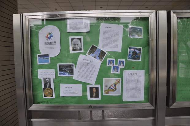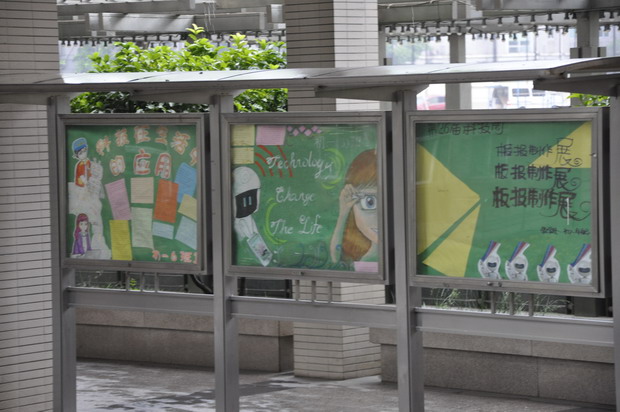 科技周的活动分为几个主题,橱窗—科技周活动海报介绍、科技与生活主题展示;专题节目展播、优秀科幻画展览、挂壁互动式科技展览;讲座——宇宙的琴弦(南大