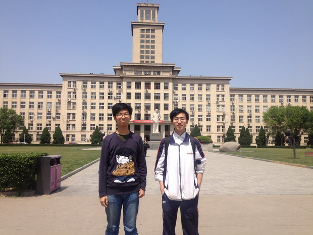 图为入选IYPT2014的陆思聪(右)、赵亦修(左)在南开大学周恩来像前合影