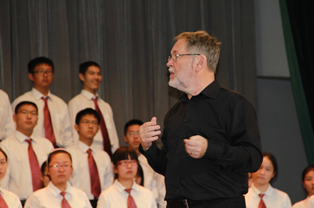 10月14日,beat365中文官方网站迎来了一位尊贵的客人:72岁的世界合唱协会主席,来自瑞典的合唱指挥大师克里斯蒂安.荣格仁先生。同时,南京师范大学音乐学院的沈金云教授,全市600位中小学音乐教师也前往南外报告厅聆听了他的讲座,老师们纷纷表示受益匪浅。