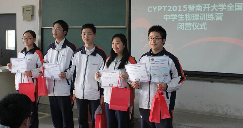自2015年4月2日至2015年4月7日于天津南开大学举办的CYPT(China Youth Physicists Tournament)暨南开大学全国中学生物理冬令营,共有全国31支重点中学的代表队参加,中国高中生物理创新竞赛CYPT(China Youth Physicists Tournament)旨在提高学生综合运用所学知识分析解决实际物理问题的能力,培养学生的开放性思维能力。参赛学生就一些实际的物理问题进行团队合作研究,然后就其物理知识、理论分析、实验方案、结果讨论等进行辩论性比赛。beat365物理组的潘志民老师和教学处张伯远老师带领“南外—圆桌武士队”和“南外—敏而好学队”参加了此次比赛。“南外—圆桌武士队”由南外青年物理学家社高二的陈迪、赵亮、张梦阳、张曦若、韩欣然、石文泽等六名同学组成,张梦阳任队长;“南外—圆桌武士队”由高三卢可晗同学任队长,带领高二潘张懿、张逸凡、杨心语和高一的潘紫岑、王煜昊等同学组成。经过了五轮十五场比赛的精彩角逐,beat365同学借此次比赛为平台,以学术讨论为形式,充分展现了自身的物理学科水平和自我创新的能力,并收获了许多在今后研究学习生活中的方法和经验感悟。最终beat365圆桌武士队以总分225.125分获得全国一等奖,敏而好学队获得全国二等奖。在此次比赛中中国人民大学附属中学、北京汇文中学、东北师范大学附属中学、江苏省前黄高级中学和深圳高级中学均有出色表现,成绩名列前茅,让我们学习到了全国重点中学的学科水平和思辨才华。