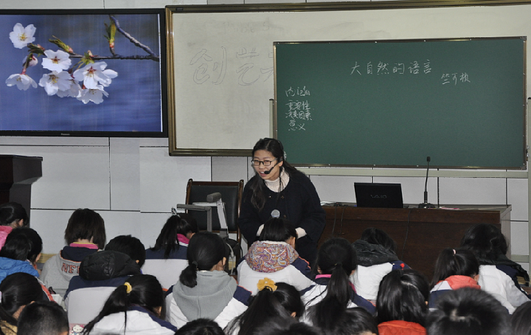 第一节课,戴雅萍老师以诗一样优美的语言伴随着精美的二十四节气图片生动地导入课文,以让学生向竺可桢先生请教有关物候的知识调动学生的积极性,从而使学生有目标的阅读课文,并迅速了解课文结构和内容。然后围绕着“作者采用了什么方法把深奥枯燥的知识说得浅显生动”这个主问题,师生进行了充分的探讨,这让学生在学习使用恰当的说明方法和生动的语言表达这两方面有了很多收获。学生们不仅对课文知识有了更明确的把握,更了解到了说明文写作时如何将事理说得浅显生动的手法。