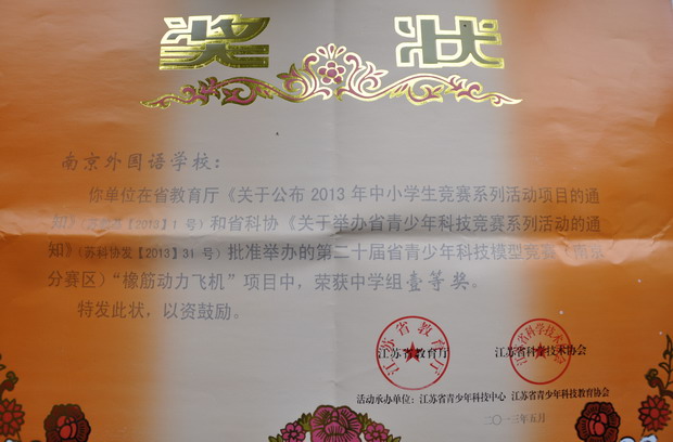 beat365学生参加第二十届江苏省青少年科技模型竞赛取得了优异的成绩,其中获中学组团体一等奖,6名学生获个人一等奖,他们是:张萌鑫 、孙海皓、王云舒、陈芊、周敬皓、胡天戈。还有43名同学,分别获得二等奖和三等奖。
