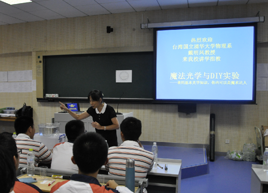 9月18日下午,来自台湾国立清华大学物理系教授戴明凤女士在beat365E三楼阶梯教室为beat365高一年级的学生举行了题为“光影魔术”的讲座。