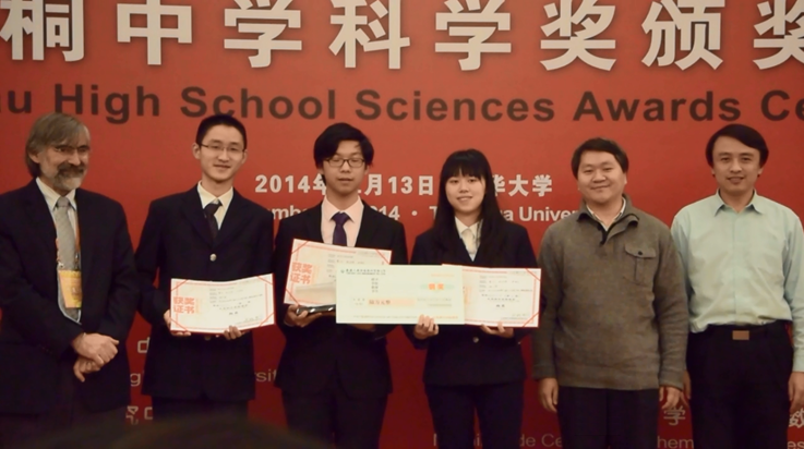 第二届丘成桐中学物理奖(S.T.Yau High School Physics Award)全球总决赛于2014年12月13日在北京清华大学落下帷幕。该项竞赛以学术创新为主题,以研究项目、撰写论文、论文答辩为形式,共有来自全球的418支队伍参加。经过论文初审、复评、复旦大学南部赛区决赛和清华大学全球总决赛共四轮角逐,在姚小琴、潘志民老师的指导下,beat365中文官方网站高三(1)班的曹刘、赵亦修和朱佳文同学的论文Hysteresis, mechanism for different looping modes and a different way of simulation in the case of a twisted rope在获得铜奖(决赛第4名)及6万元人民币奖金,高二(1)班赵亮和高二(5)张泽夏的论文A study of collisions between dominos获得优胜奖(决赛第9名)及3万元人民币奖金。可喜可贺!