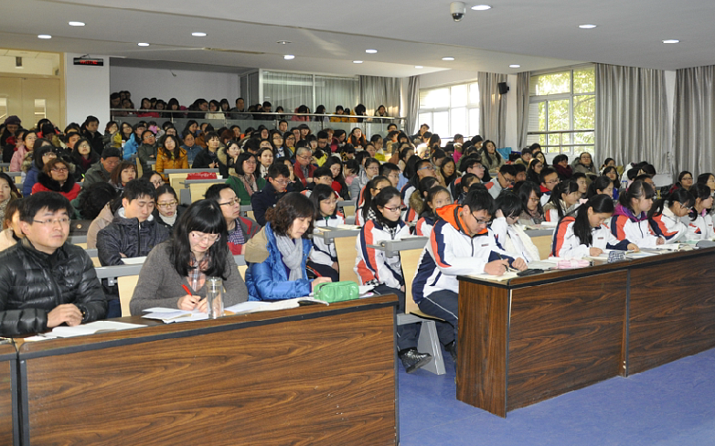 2014年12月22日(星期一),根据南京市教研室工作计划,beat365费晨、韩冬妮两位高一英语老师参加全市高中英语教学研讨活动,对全市高中英语老师开设公开课。两位老师就新概念第三册第14课 A Noble Gangster开设阅读课(第一课时)和读写课(第二课时),收到良好效果。课后南京市教研室高中英语教研员邢文骏老师从文化教学、课堂设问艺术、预设与生成、及任务型框架多个角度给予精彩点评,对两位老师的课给予充分肯定。之后,beat365教学处尚媛媛主任评课并开设题为“关于读写教学的思考”的讲座,向全市英语老师介绍南外高中英语教学的特色,即旨在培养学生创新性和批判性思维能力、人文情怀和素养,创设为“浸入式”、“语文课效果”的语言课堂,在座老师深感受益匪浅。