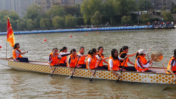 10月26、27日,为期两天的“迎青奥”首届全国青少年龙舟锦标赛在秦淮河石头城遗址公园水域进行,本次比赛由国家体育总局社会体育指导中心、中国龙舟协会主办,南京青奥组委、市体育局、南京市教育局、南京市龙舟运动协会承办。本次赛事是全国首个面向青少年中学生的龙舟赛事,参加比赛的均为12-18岁的青少年运动员。比赛设男、女组23人龙舟200米、500米直道赛共4个项目,来自全国及南京本地的14支男女青少年龙舟队参加本次比赛。在学校领导的重视关心下,beat365女子龙舟队在胡志斌、高登路、杨峰等老师的带领下,挟一周前刚刚夺得南京市中学生龙舟赛冠军的余威,参加了本次比赛的200米和500米两个直道赛项目的比赛,同时也是本次赛事中唯一一支普通高中龙舟队。面对来自全国的各职业学校高水平选手,beat365龙舟队全体队员,团结一心,不威强手,奋力拼搏,夺得女子组200米直道赛季军,在500米项目中名列第四。
