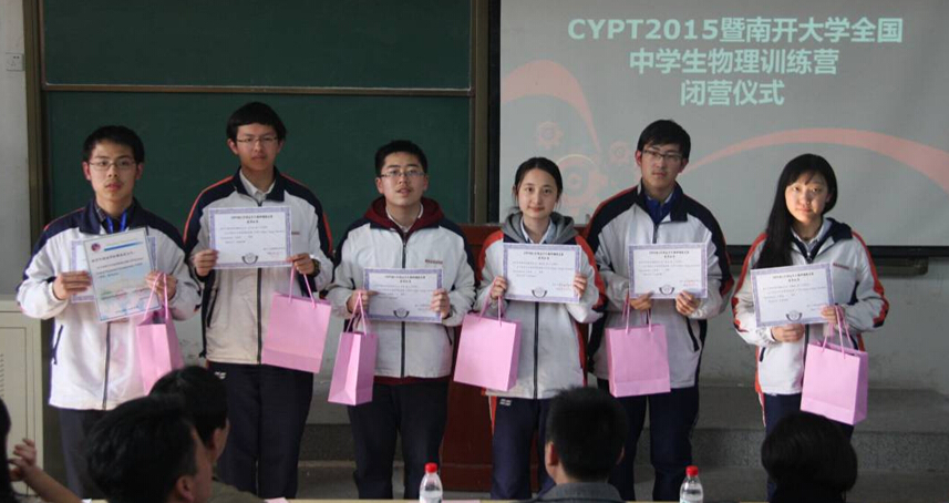 自2015年4月2日至2015年4月7日于天津南开大学举办的CYPT(China Youth Physicists Tournament)暨南开大学全国中学生物理冬令营,共有全国31支重点中学的代表队参加,中国高中生物理创新竞赛CYPT(China Youth Physicists Tournament)旨在提高学生综合运用所学知识分析解决实际物理问题的能力,培养学生的开放性思维能力。参赛学生就一些实际的物理问题进行团队合作研究,然后就其物理知识、理论分析、实验方案、结果讨论等进行辩论性比赛。beat365物理组的潘志民老师和教学处张伯远老师带领“南外—圆桌武士队”和“南外—敏而好学队”参加了此次比赛。“南外—圆桌武士队”由南外青年物理学家社高二的陈迪、赵亮、张梦阳、张曦若、韩欣然、石文泽等六名同学组成,张梦阳任队长;“南外—圆桌武士队”由高三卢可晗同学任队长,带领高二潘张懿、张逸凡、杨心语和高一的潘紫岑、王煜昊等同学组成。经过了五轮十五场比赛的精彩角逐,beat365同学借此次比赛为平台,以学术讨论为形式,充分展现了自身的物理学科水平和自我创新的能力,并收获了许多在今后研究学习生活中的方法和经验感悟。最终beat365圆桌武士队以总分225.125分获得全国一等奖,敏而好学队获得全国二等奖。在此次比赛中中国人民大学附属中学、北京汇文中学、东北师范大学附属中学、江苏省前黄高级中学和深圳高级中学均有出色表现,成绩名列前茅,让我们学习到了全国重点中学的学科水平和思辨才华。