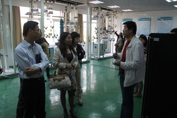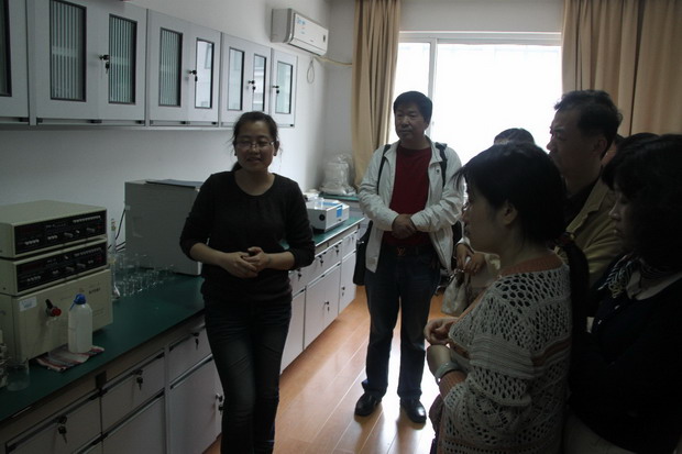 老师们认真聆听实验员介绍现代分析仪器