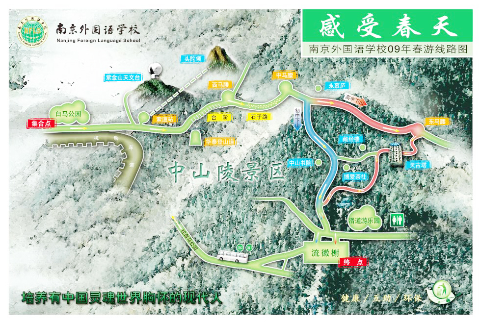 南外的每一次春游秋游,都是那样的与众不同。没有代步的交通工具,没有包办的餐饮,只有一张路线图充当导游,引领我们去体验大自然的美丽与魅力。