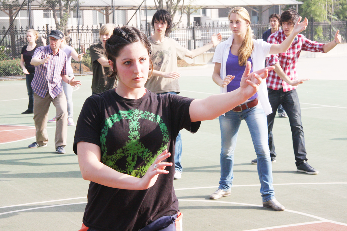 本报讯 通讯员 高一(5) 班 张雨薇 10月22日,在同学们和老师的盛情邀请下,荷兰来访团一行来到高一(5)班B小班的英语课上做客。这是一次自由的交谈会,气氛异常热烈。同学们自成小组与不同的荷兰学生亲切交流。由生疏到笑成一团,每一个人都享受着短短一节课的美好时光,从各自的学校生活到各自的家庭,从荷兰的城市到中国的城市,从各自地区的饮食到娱乐,再到货币的对比,话题无所不及。这次虽短暂但意义深刻的友好交流,不仅提高了同学们的英语水平,也让同学们在与外国友人的交流中获益匪浅,增进了彼此的情谊。另外,荷兰来访团的带队老师还给予了南外学生极高的评价。最后同学们与荷兰来访团的学生依依不舍地在一起用相机记录下了这值得纪念的美好时刻。(图为荷兰的学生在学习太极拳) |