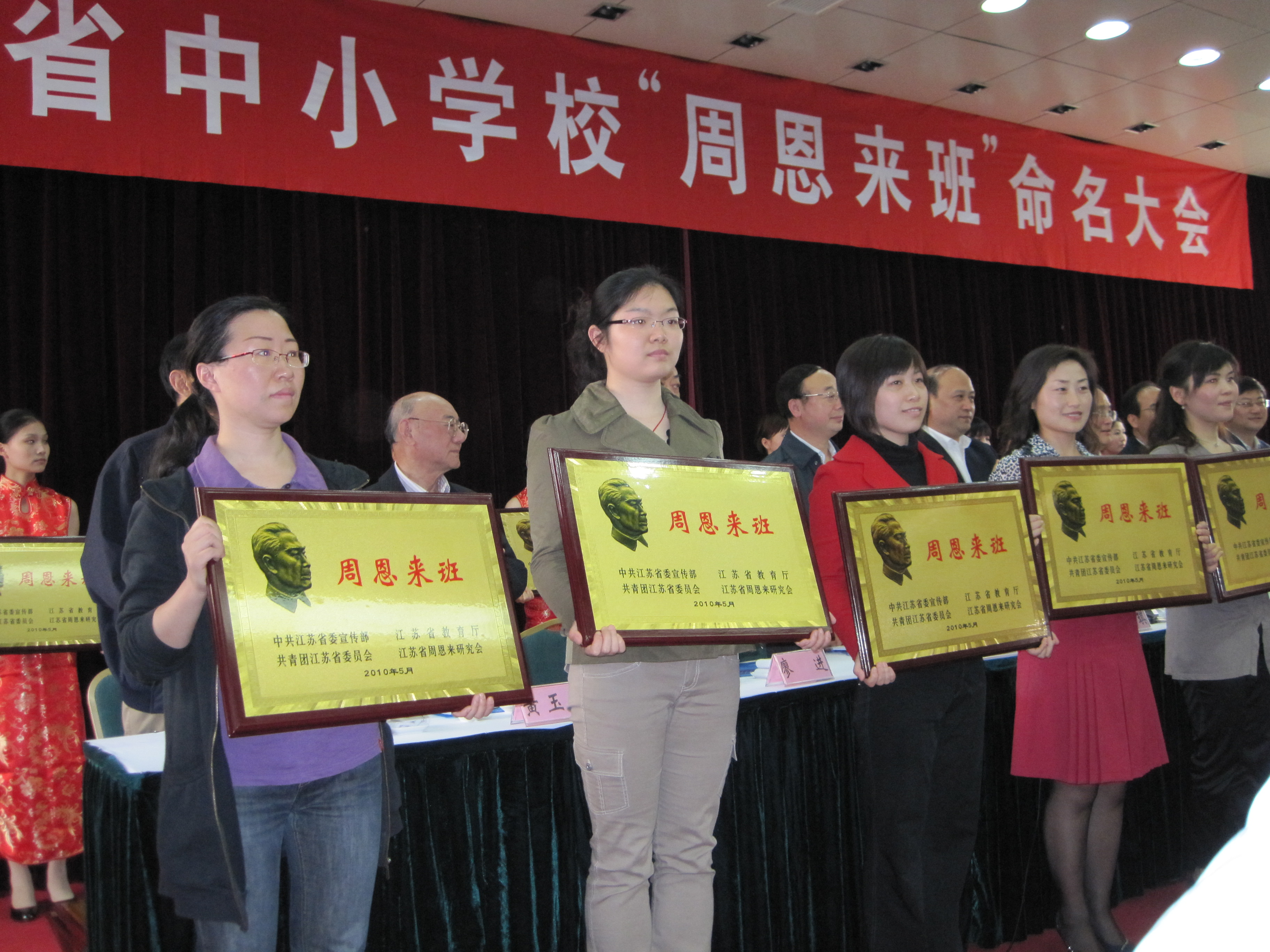 5月15日下午,学生处吕燕老师和初二(9)班班主任杜菁老师一起参加了2009-2010年度“江苏省中小学校‘周恩来班’命名大会。 经省委宣传部、省教育厅、团省委、省周恩来研究会联合研究决定命名beat365中文官方网站初二(9)班等60个班级为江苏省中小学“周恩来班”。大会上为每个班级颁发命名证书、铜牌,给每人学生赠发图书和“江苏省周恩来班”纪念徽章,接着四个单位的代表做了大会发言,交流经验。省委教育工委副书记丛懋林同志最后做了总结,号召大家紧密配合学校德育,以周恩来同志为光辉典范,广泛、深入、持久开展创建活动,为发展教育事业,培养“四有”新人作出新的更大贡献。 |