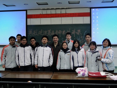 主讲人葛磊先生用视屏、音乐、文字等多种多样的形式向同学们生动地介绍了现代摇滚音乐的起源、发展以及代表人物:从节奏布鲁斯,叮砰巷白人音乐,到披头士、滚石乐队;从乡村摇滚到迷幻摇滚、死亡金属和朋克。在讲座的结尾,同学们涌上讲台和主讲人合影留念,本次讲座圆满结束。