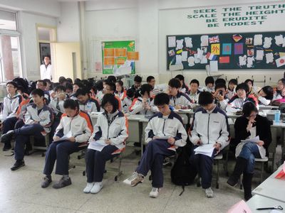(3)班辩题是是“建设和谐社会,完善社会制度更重要”和“建设和谐社会,调高人民素质更重要。双方展开激烈的辩论,其中第三个环节——自由辩论阶段尤为精彩。双方唇枪舌剑,辩论场上硝烟四起。经过最后一轮针锋相对的总结陈词,本场辩论告一段落。评委老师宣布获胜班级——8班,并允以精妙的点评。