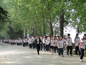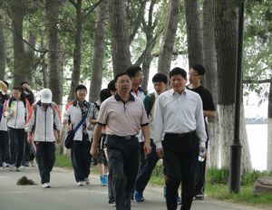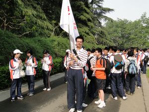 一大早同学们便早早来到的太平门的起点集合,举着代表各自年级或者班级的旗帜,激情洋溢。时间一到,高一(1)班作为领头的队伍,排着整齐的队伍出发了。当天的气温虽然很高,但是玄武湖上阵阵而来的凉风,帮我们驱散了身上的暑气。同学们拿着春游纪念卡,每走到一处还不忘去寻找卡片上的答案。初中同学平时很少走这么远的路程,但是所有的同学都