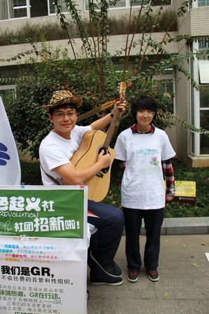 位于B楼和D楼间的老社团则一如既往地吸引了众多同学的眼球,老社团凭借之前的招新经验,突出展示了各自社团别具一格的风貌。“国风社”的古装造型加上咏春拳的表演,生动有趣;“戏剧社”的成员们穿着欧式戏剧服饰,“动漫社”的动漫cosplay,“民俗社”的古装、古琴表演,带着同学们来了一场穿越之旅;“音乐社”请来了上届的社长进行吉他演奏;“华语纵横社”、“绿色起义社”、“天文社”的联合招新口号喊得震天响,气场十分强烈。