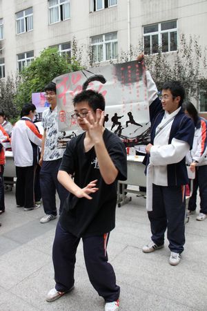 即使天空中淅淅沥沥地飘起了小雨,即使全体高二同学下午还要迎接月考的挑战,每一个南外人心中的热情却丝毫也没有因此而退却。