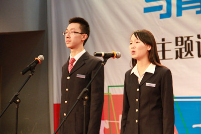 为本次读书节致辞,本届校学生会主席马泽瑞同学和学习部长唐志渊同学也相继发言。本次演讲比赛共有十组参赛选手,