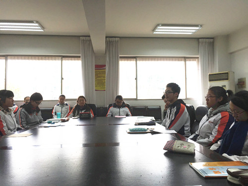 2015年3月5日12:30,在校团委尹荷蓉老师的主持下,高一年级学生辅导员在行政楼三楼会议室召开了工作经验交流座谈会。会议一开始,来自高一(8)班的李鹿晞同学和来自高一(7)班的金宇峰同学就上学期的辅导员工作与其他辅导员进行了分享交流。他们介绍了在初一班会、艺术节、元旦晚会以及平时学习生活中自己是怎么参与、是怎样与初中同学进行交流的。他们的发言使大家对接下来的工作有了更明确的想法与规划。随后,尹老师听取了大家对现行学生辅导员工作制度的意见和建议,对学生辅导员分组搭档模式是否合理,来自高中不同班级的辅导员在工作配合上有没有困难等问题同学们畅所欲言。同学们表示可以在报名时增添语种信息,便于为德、日、法语种班级安排相应的辅导员。会议的最后,校团委肯定了高一学生辅导员的工作价值,同时也就本学期进一步做好团队衔接工作提出了明确的要求。经过本次工作经验交流座谈会,希望beat365高一年级小辅导员可以再接再厉,用热情和真诚为初一同学提供更加优质的指导与监督!