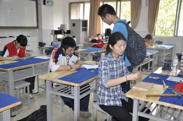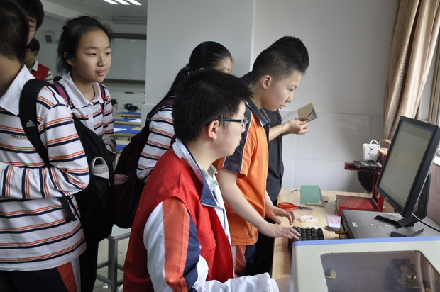 今年的科技周不同凡响,不仅有展览、展示、实验活动—科技小报展览、科幻画作品展、插画艺术、舌尖上的化学、传感器在生物学领域中的应用、古今推理判案演变、乐高机器人;讲座—快乐数学、肿瘤的起因于预防等;比赛、评比活动—物理竞赛、化学竞赛、九连环解环比赛等。最令同学们激动的是科技周期间启动的校科技活动中心,开放了50多个科技体验项目,让校园充满了科技氛围,让同学们收获颇丰:三维打印作品、激光雕刻作品、电脑绣花作品、相框作品、鲁班锁作品、奥运五连环作品、四巧板作品、电子设计作品、机器人设计作品等等无不出自同学们灵巧的双手。同学们拿着自己亲手制作作品,互相攀比探讨,享受成功的喜悦。