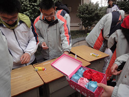 搬了12张桌子浩浩荡荡占了花坛一侧,我们开始了活动。到了才发现开场白串词什么的都是纸上谈谈即可止的东西,因为孩子们一看到我们搬来了那么多东西就立马围了过来问要做什么,根本不需要引领。