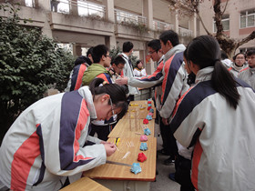 即兴题由小车组负责。由于是有奖答题,同学们参与热情格外高涨。“餐巾纸的用途”一题中,同学们展开想象的翅膀,畅所欲言了小小一张纸的用途;“外星人的思想”一题中,同学们将帽子、圆珠笔等生活中常见的物品想出了不同的用法;“运输乒乓球”一题中,要求用吸管,将乒乓球运输至不同分值的盒子内,期间吸管还不能碰到球,多人一组齐心协力,共同完成了这一极富挑战性的任务。