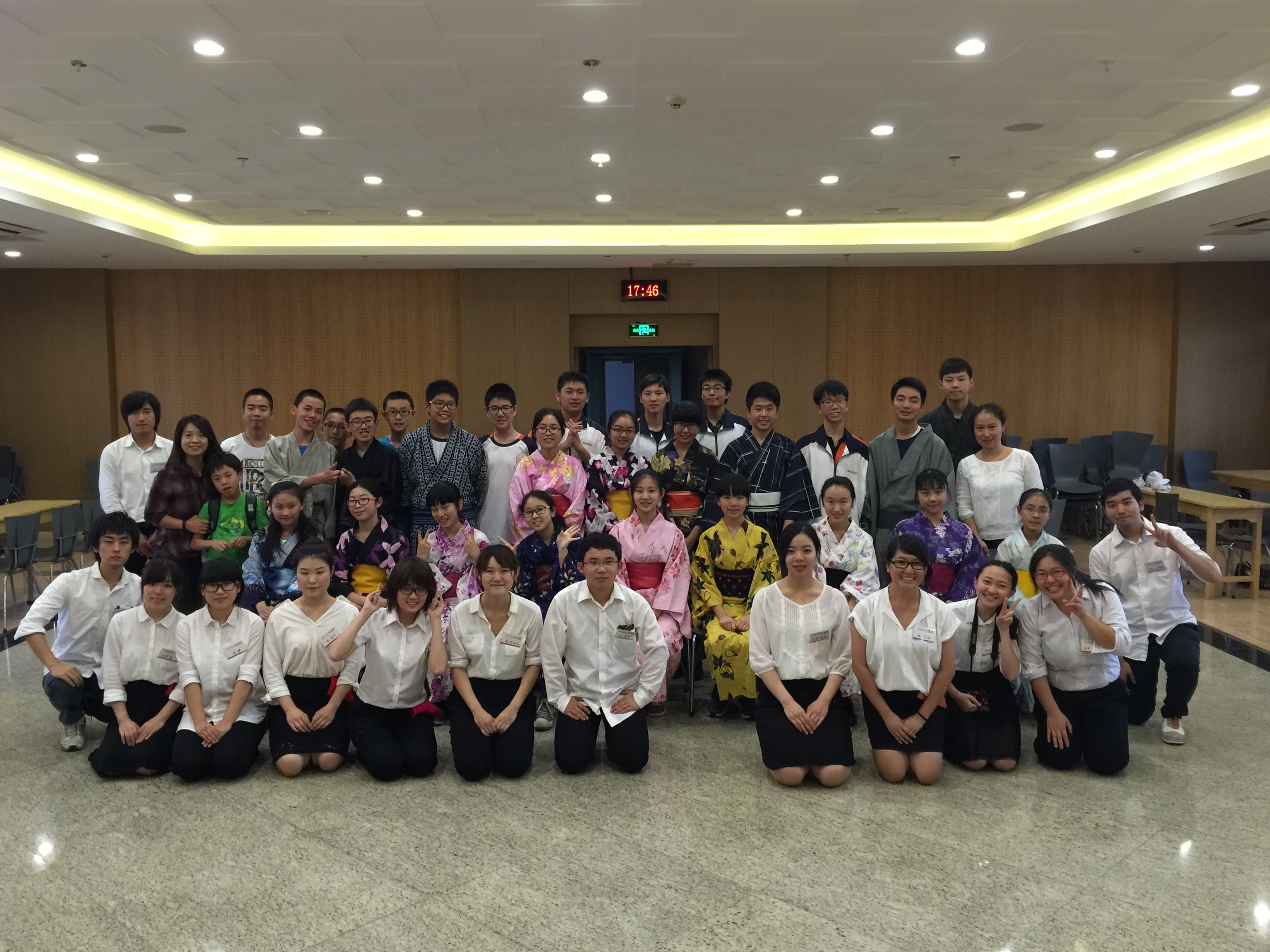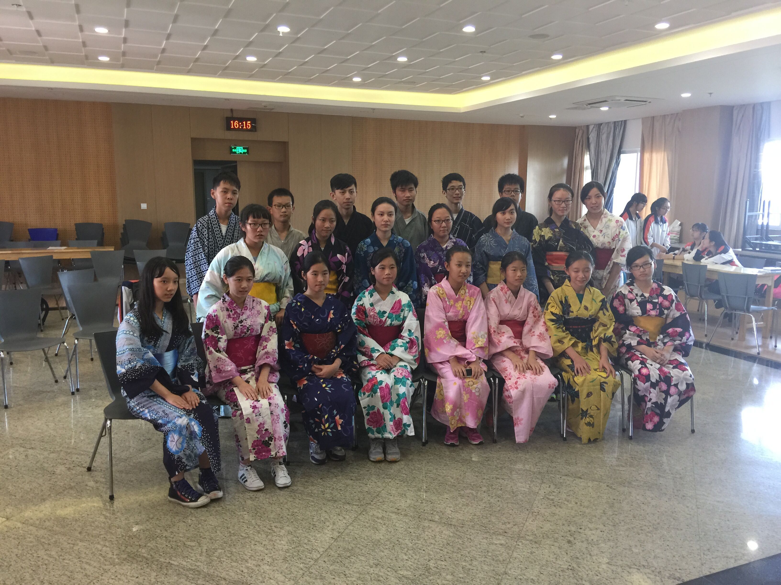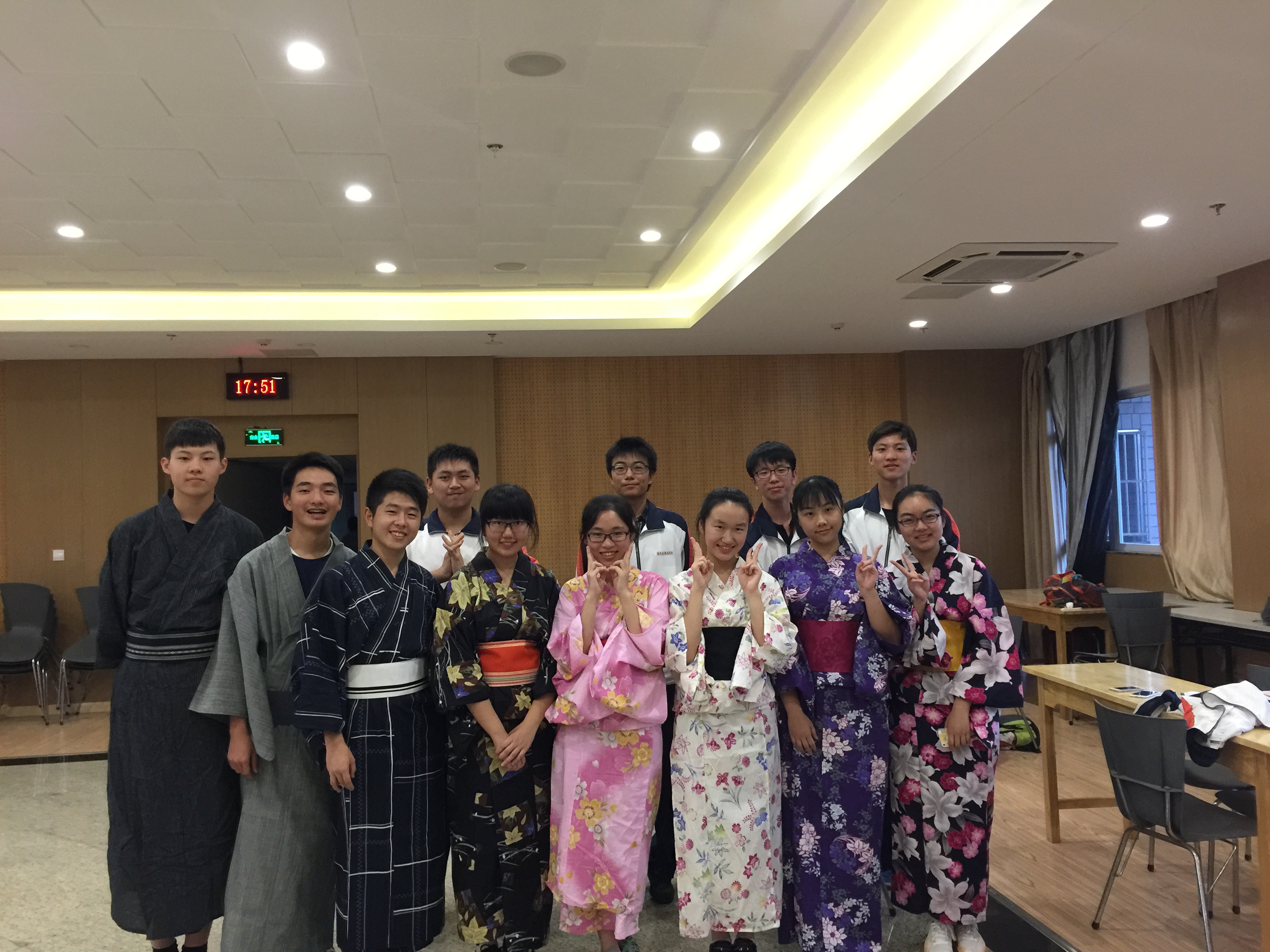 上午十点,APU茶道部学生到达南外,与南外日语班学生一起进班听课交流并参观了南外校园。下午立命馆学生为南外初一到高三的日语班学生进行两场茶道表演。南外日语班学生作为茶会的客人参加体验了日本茶道,从品尝点心到点茶、献茶、观赏茶具。之后由APU茶道部员带领两至三名学生体验日本简单的抹茶制作,以及各种处理道具的做法,结合正式茶会的体验练习日本茶道,了解日本茶道每一步骤中渗透的感情。最后,南外学生还试穿了由茶道部员提供日本浴衣。