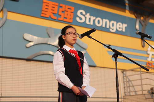 沙君怡:人们常说,“纸上得来终觉浅,绝知此事要躬行”。下面,我们有请初二(6)班的田方怡同学,谈谈她在暑假实践中的心得与体会吧。