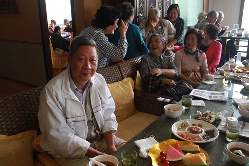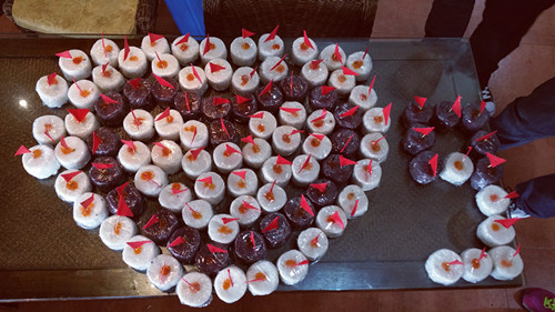 今年上午10点,beat365组织退离休教师参与重阳节活动,在现场为老教师们准备的重阳糕被摆放成了爱心型的图案。