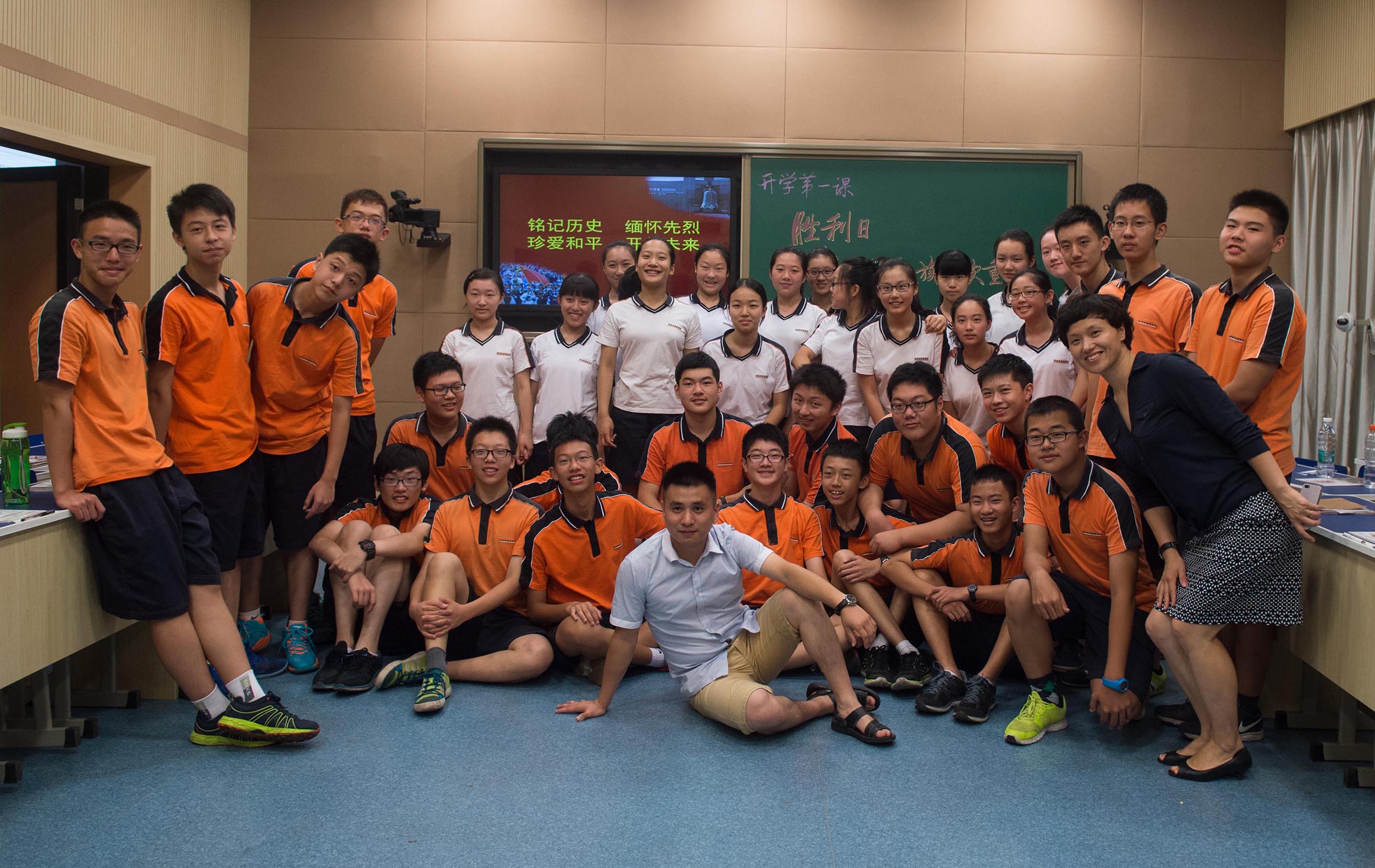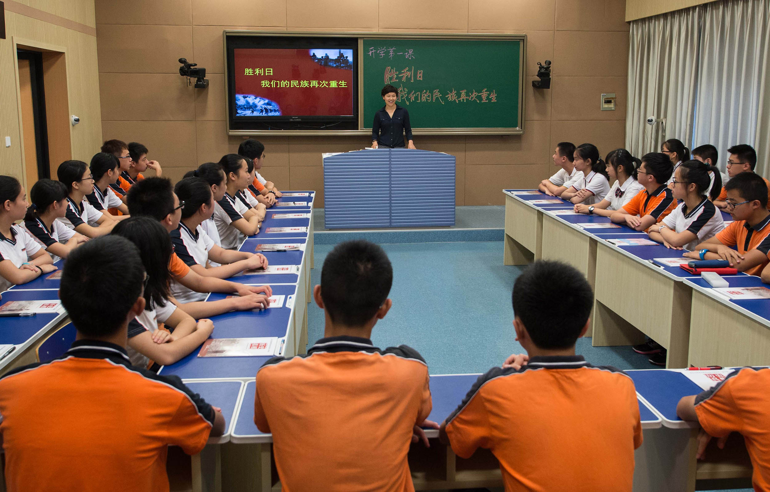 近日,新华社新媒体中心及新华社客户端,联合多家新兴媒体,在网络上发起“抗战公开课”大型报道。受新华社邀请,beat365余维老师作为代表之一为全国学生上了一节震撼人心的抗战公开课——《胜利日,我们的民族再次重生》。南外初三(3)班同学以及刚刚参加完军训的高一新生代表参与了这节课的录制。