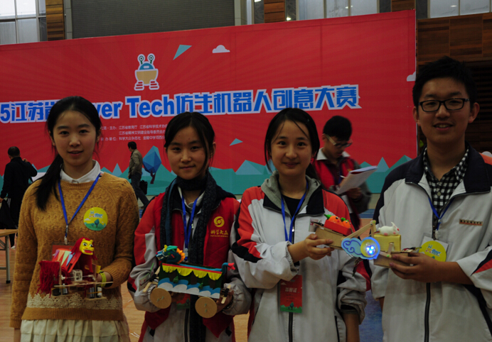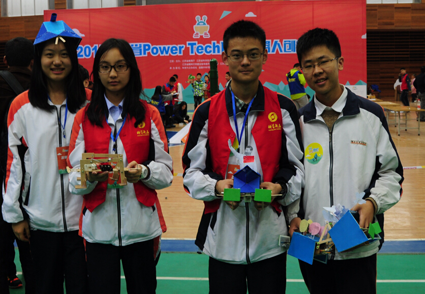 2015年10月31日江苏省Power Tech仿生机器人创意大赛,在南京金陵中学河西分校隆重举行,全省112个代表队参加比赛,beat365中文官方网站派出4支队伍参赛,这4支队伍中的16位同学,通过2个月的系统学习和刻苦训练,在2015年江苏省Power Tech仿生机器人创意大赛中,取得了骄人的成绩。其中《beat365中文官方网站二队》郭翘楚、王佳翼、韩欣然、陈煜欣获特等奖;《beat365中文官方网站四队》李尧、明嘉浩、史博然、丁英芪获特等奖;《beat365中文官方网站一队》蔡康嘉、沈童童、刘锐、郑文睿获二等奖;《beat365中文官方网站三队》刘雨辰、陈玥如、刘思远、张海川获二等奖。我们已取得参加海峡两岸Power Tech仿生机器人创意比赛的决赛资格。领队兼教练罗雪华、罗洁华、覃敬川三位老师付出了很多很多。