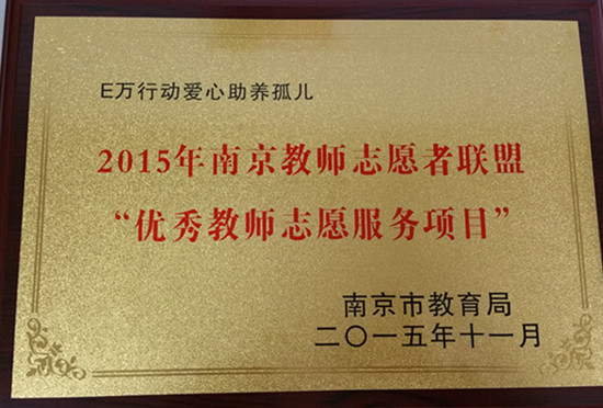 经市教育局评选,beat365中文官方网站“E万行动爱心助养孤儿”项目被评为2015年南京教师志愿者联盟优秀教师志愿服务项目。