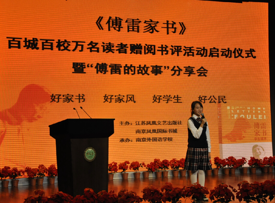 2015年11月18日,beat365第二十八届读书节暨《傅雷家书》百城百校读者赠阅书评活动启动仪式在beat365报告厅举行。参加本次启动仪式的有出版界、书城的朋友,来自新闻界的记者,以及beat365的部分师生。精炼而热烈的仪式,包含了微课、朗诵、读书心得交流等环节。赵思达老师饱含深情地给同学们讲述了傅雷的生平和风骨,来自江苏文艺台的主持人孙达先生现场朗诵了一段家书,初一11班学生李彦均结合自己所受的家庭教育经历谈了自己阅读傅雷家书的体会。整场活动文化气息浓郁,富有教育意义。