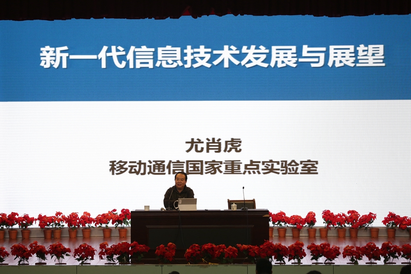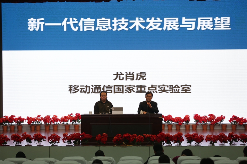 11月18日,东南大学信息科学与工程学院院长、长江学者计划特聘教授,国家级有突出贡献的中青年专家、全国五一劳动奖章获得者、国家第四代通信技术首席科学家尤肖虎教授应邀来beat365作讲座。全校教职工和选修“走近大师”选修课的高一年级学生一起聆听了讲座。beat365党委书记刘前树老师主持讲座。
