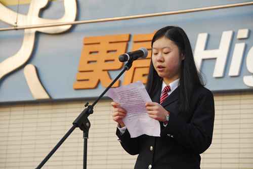 段依含:老师们、同学们,大家好!我是来自高一五班的段依含。