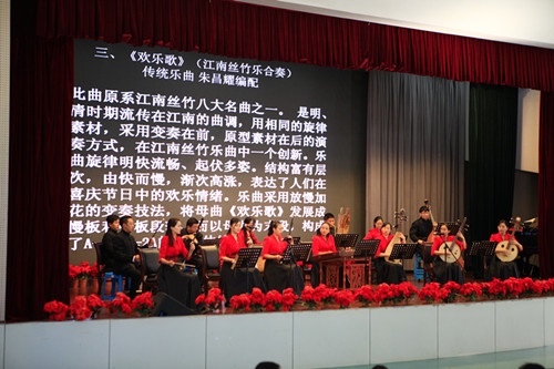 乐团的老师给南外民乐社团同学们的演奏做了点评,帮助他们提高演奏的技艺。随后他们还给我们带来了精彩的演出,向我们展示了博大精深的江南丝竹文化。