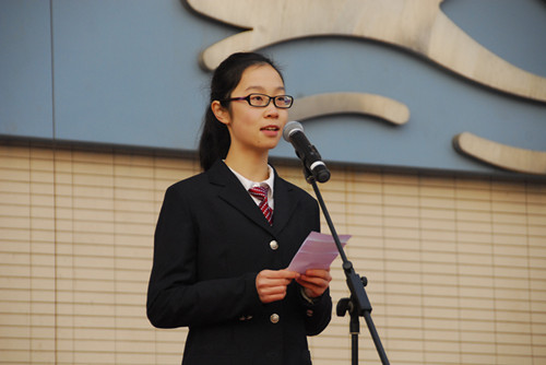 当每年我们优秀的学长学姐真正意义上走出国门,他们带着南外赋予他们的沉淀,前往国际顶尖的学府学习知识。他们离开了中国,是否意味着爱国主义在他们身上得不到体现呢?我曾在学校门口的电子展示屏上看见一位校友给母校的寄语:“南外不仅给了我最美好的中学生活,更教给我怎样做人,爱国家。”当我们在新的时代,在南外为我们营造的氛围里向世界展望时,它时刻告诉我们,我们不仅要有世界胸怀,更要记住自己是中国的青年。中国灵魂,世界胸怀。