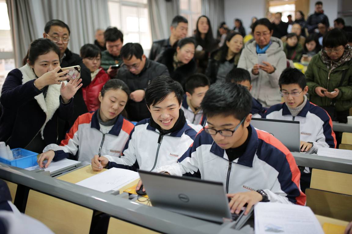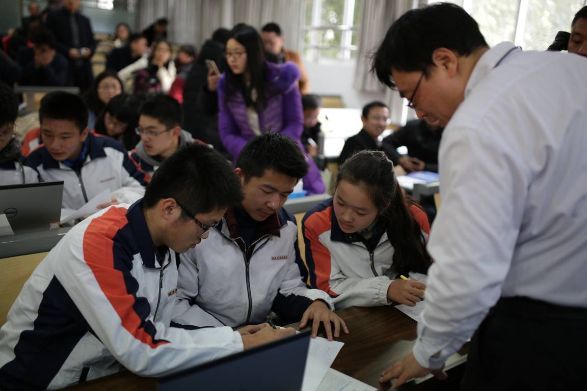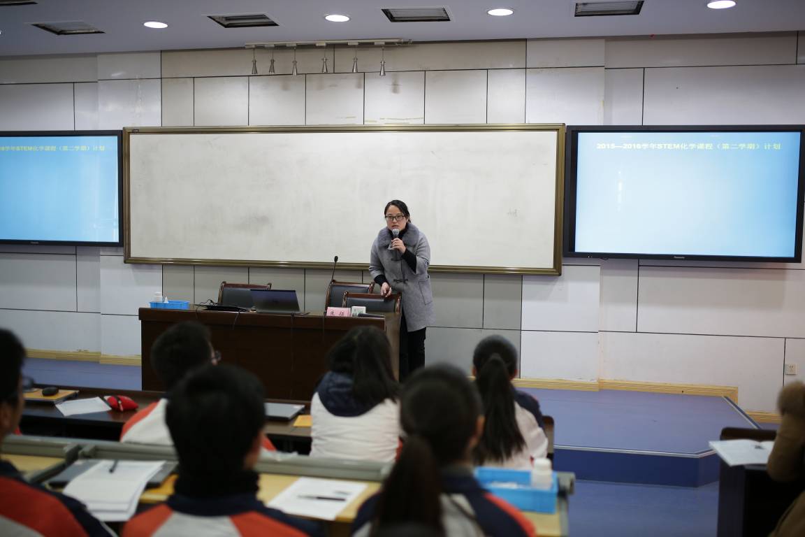 12月18日中午和下午,朱征副校长在E二楼阶梯教室向与会的理科领导和老师们做了“江苏省基于STEM理念的化学课程基地”建设情况详细介绍,并带与会领导与老师们参观了STEM+实验室。化学组张玉娟老师、许亮亮老师、陈静老师分别开设了《学生自主学习成果汇报》和《STEM+化学创新实验课程》公开课。本次STEM+化学基地展示活动的重点是展示在教师的科学设计下学生们的创新思维、自主学习能力、创新实践能力和动手创造能力。