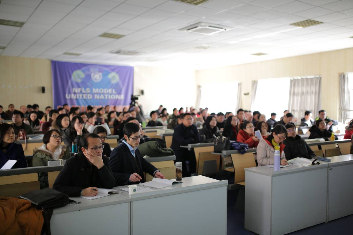 12月18日下午, 连凯副书记做了江苏省模拟联合国课程基地的情况介绍,英语组尚媛媛老师开设了《面向历史和我们自己》公开课,英语组徐斌老师和胡雨辰老师开设了《模拟联合国》公开课,政治组陈铮老师开设了《未来企业家课程》公开课。本次模拟联合国课程基地主要展示的如何利用培养学生的批判性思维能力、用历史的眼光来分析现代国际国内社会问题,如何培养有国际胸怀和视野的现代国际公民,如何培养有应对金融和商业挑战的未来经济公民。