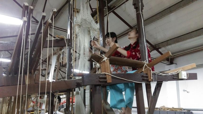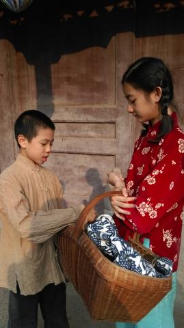 为了真实再现当年的场景,夏天哥哥带我们进入云锦研究所的传统织机拍摄,其他几位妈妈准备道具。歌词中有一句:肉切得有纸一样薄,遇到一阵狂风,就刮到北极阁......这样薄的肉怎么解决?爸爸拿起画笔,很快画出一块以假乱真的“纸肉”。台上一分钟,台下十年功。平时看电影时很轻松,到自己体验拍摄的时候才觉得很不容易。一个平常的生活动作,落实到实处,怎么都做得不自然,只好一遍遍重复再来。一个动作的分镜头拍摄,需要我们一次次反复。短短的六分钟的视频,我们拍了三个多小时。夏天哥哥和妈妈听不懂德语,无法替我们指导,我们只好先说中文台词,找到感觉后,再说德语台词。拍摄时妈妈在摄像机后用竹竿吊着“纸肉”,小曹跟着肉跑的场面,让我们忍俊不禁 .....丁午怱的“下跪,哀求的表情”,张一驰老板严肃的表情和那句:“Schnell!” 真的让我们吓了一跳......