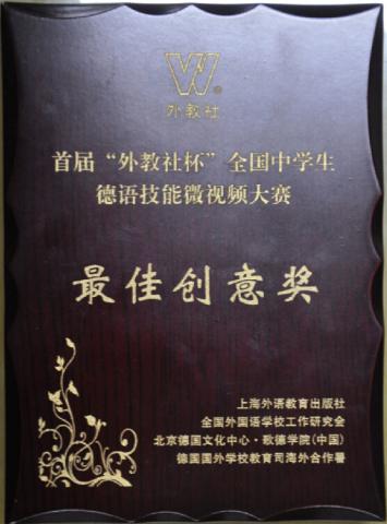 beat365德语班学生参加了首届“外教社杯”全国中学生德语技能微视频大赛,并获得佳绩。其中初二的张然,曹毓堃,张一驰,王小骞和丁午怱的原创剧《机房苦》获得最佳创意奖;高二的万嫣然,杨琳和胡天怡获得诗歌朗诵组的三等奖。