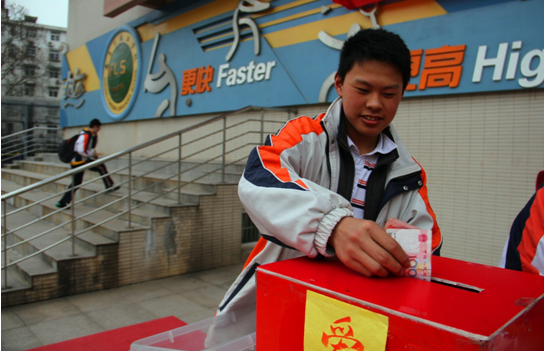 落日时分,一个个小摊主捧着鼓鼓囊囊的“血汗钱”捐到主席台的捐款箱。他们满心欢喜地,郑重地,觉得自己像是完成了一项伟大光荣的使命。的确,捐献自己的爱心是我们的使命和职责。作为在班级摊位守摊的成员之一,我体会到叫卖和还价的不易,却也感觉到自己和周遭同学的深深投入。在活动中,班级荣誉感和对处于困境中人们的爱心关怀连成了一体,驱使我们努力去做,于无形中锻炼培养了作为公民的社会责任感和作为一个人的爱和悲悯之心,用爱心助梦,温暖圆梦。短短一个小时,我们师生共筹集善款贰万叁仟叁佰肆拾陆元贰角,为南外爱心基金会又壮大了力量。