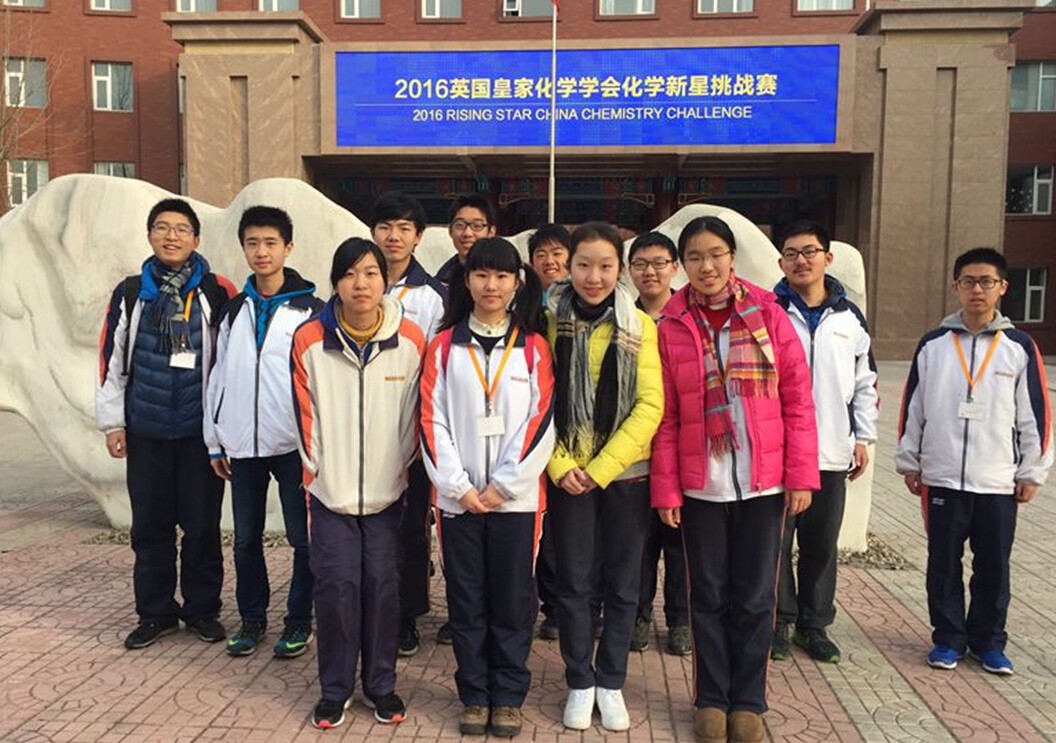 2015年12月12日,来自全国97个国际学校和重点中学的2400名同学参加了全国5个赛区的“化学新星挑战赛”预赛。比赛为4人团体赛制,每个团体由两个高一学生、两个高二学生组成,强调高低年级选手配合,以笔试形式进行,采用答对加分答错扣分的评分机制。除考察选手的化学学科实力之外,还锻炼同学的团队协作与取舍、判断能力。全国总计60支团队240位选手进入总决赛,beat3653支团队12名高一高二本部学生( 谢远哲、马嘉源、程昊然、王卓言;林雨墨、严汀滢、吕舲远、马浩成;陆静怡、郑乐天、徐瑄凰、潘奕凡) 经过预赛以优异的成绩晋级总决赛。