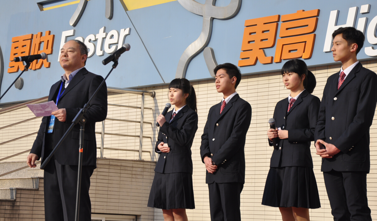 今年、イギリスのシェークスピアとスペインのセルバンテスが逝去して400年が経ちました。「ハムレット」「ドンキホーテ」、これらは100年の歴史ある作品で、永久に輝きを放っています。彼らのような世界に貴重な知的財産を残した著名人のために、今年の外国語祭のテーマは「古き良きものに敬意を」としました。古きよきものに敬意を払うことは、優秀な民族の伝統文化に、また人類の最高の知慧に、そして真・善・美の価値に敬意を払うことです。私は生徒たちに彼らを敬い、自ら古き良きものから価値を見出し、高尚な品格や趣味を持ち、優れた品性を備えた人になってほしいと願っています。未来の君たちに、新しい作品を作り出す人になることを期待しています!