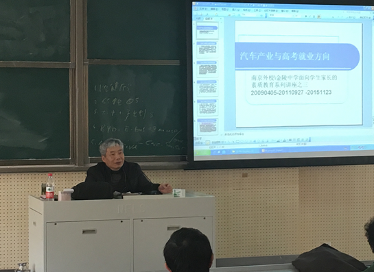 3月25日下午15:30第三期高中家校论坛在校E3阶梯教室准时开始。本期论坛来自江苏省海事职业技术学院李东平教授为高中家长做了《职业生涯规划之——汽车制造与清洁能源汽车发展》的讲座。李教授以汽车产业,特别是新能源汽车产业为背景,重点介绍如何让您的孩子了解未来十年汽车产业的发展方向、发展动力和发展瓶颈,使孩子深入思考是否可以将汽车行业作为自己职业生涯规划的一个备选目标。