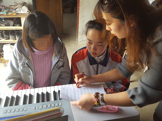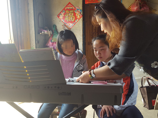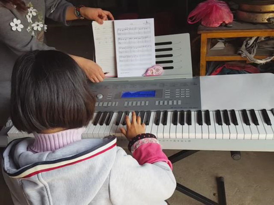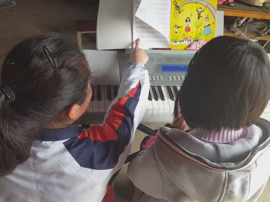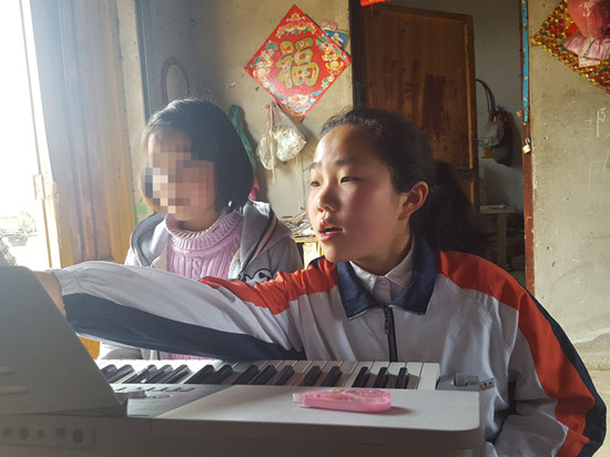 在专业老师指导小裴同学学琴的同时,学生处尹老师带着小朱老师和我们另外四位同学去探访了令人牵挂的小孙和小杨同学的家。他们所居住的屋子是农村中随处可见的平房,屋内布置极为简单,基本没有什么家具,一张木板就是祖孙两人的床铺,不禁让人唏嘘不已。可是即使是在这样简陋的环境下,小孙和小杨的成绩在班上却都是名列前茅的。听他们说,县中的孩子都是早上六点多钟开始上课,晚上将近十点才下晚自习,周六周日正常全天上课。更令我们惊讶的是,他们每周放三个小时的假,而一个月只有一天自由支配的时间。