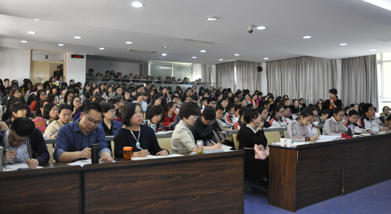 2016年4月18日上午, 南京市各学校初中英语教研组长、初一初二英语备课组长、南京市优秀青年教师等齐聚beat365中文官方网站,和南外的英语老师们一起探讨了“如何在初中英语课堂上培养学生的批判性思维”的议题。南外的三位青年教师吕渊、蔡韵、纪敏在领导和同事们的指导与帮助下,给大家上了三堂各具特色的观摩课。二楼的阶梯教室里,来自全市的老师们济济一堂,大家聚精会神听课并记录,课后各位同仁就议题结合课堂展开了深层次的探讨。