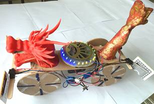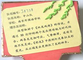 《beat365中文官方网站中山队》队长高一5班的沈童童说:出发时我们信心百倍,因为我们深知:机会总是留给有准备的人的,我们抓住每一分可利用的时间,在培训中罗老师教我们学会了看图、绘图、修改图,还亲眼见识了激光雕刻机操作的全过程。我们学会了基本工具的使用,学会了木工划线、割据;学会了金工组装、紧固各种另配件;还意外地学会了电工焊接、接线,数字电路中的触发器工作原理和操作方法,见识了LED循环灯的制作;收获太大了。我们《双龙戏珠》造型主体的龙头是3D打印的,龙尾是美术才女刘思远制作的,想必一定能吸引评委的眼球,激光雕刻机的启动,也为我们的训练找到了一条通往胜利的捷径,节省了大量的割锯木料和钻孔时间。训练开始就可以在老师的指导下直接组装、调试,得以尽快地从中得到感受、启发和悟性。在训练时我们每个队员团结合作、分工负责,加上平时训练有素,方法得当,尤其是负责万兽之王的陈玥如、明嘉浩同学,在练习的时候他们谁都说服不了对方,总是先吵,再做,再比,再改。于是在上一次省级比赛的基础上,万兽之王又有了较多改进。这次赴台参加“2015 Power Tech华人区科技之星创作竞赛”,我们取得了很不错的成绩,但比起在训练和比赛期间收获的种种,成绩和名次真的是微不足道。