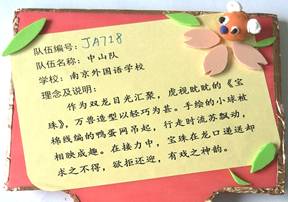 我们beat365中文官方网站,是从2015年9月才开始涉足这项活动的。所以,这次谁也没料到我们南外会冲进前八强。《beat365中文官方网站中山队》的领队兼总教练罗雪华老师和队员沈童童、刘思远、陈玥如、明嘉浩在短短的3个月中付出了很多很多,同样也收获了很多。我们《beat365中文官方网站中山队》是一个团结、友好、战斗的集体。大家既有共同的兴趣爱好,又有不同的兴趣延伸,同学们平时互相关心、相互学习、互相帮助、取长补短共同提高,在创作中享受快乐。